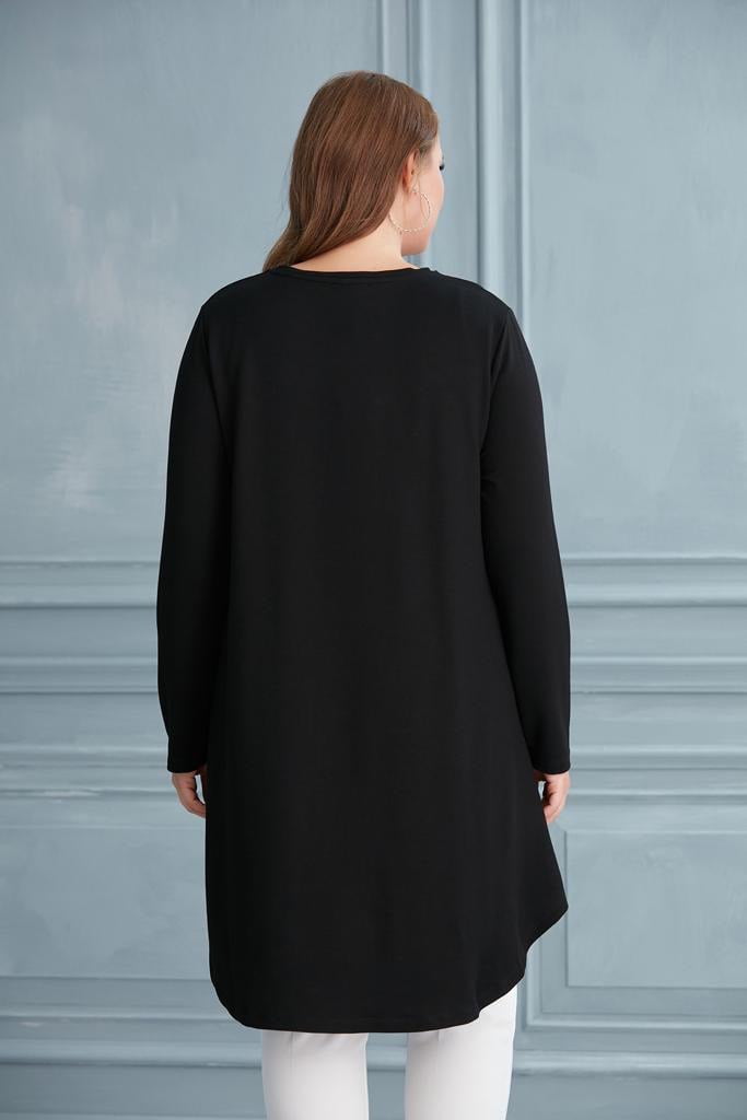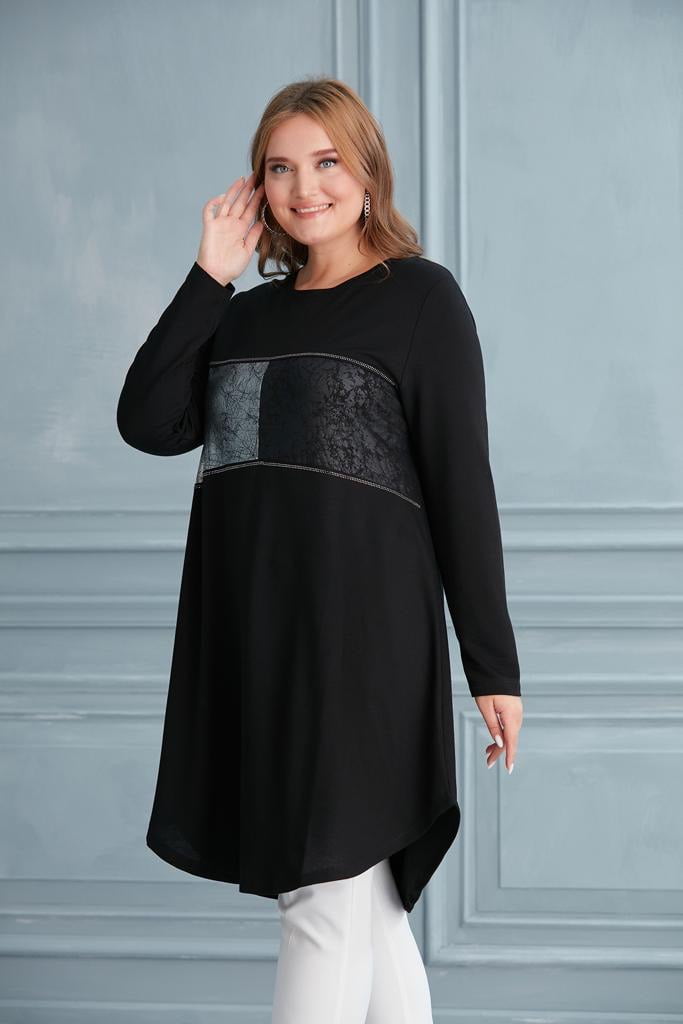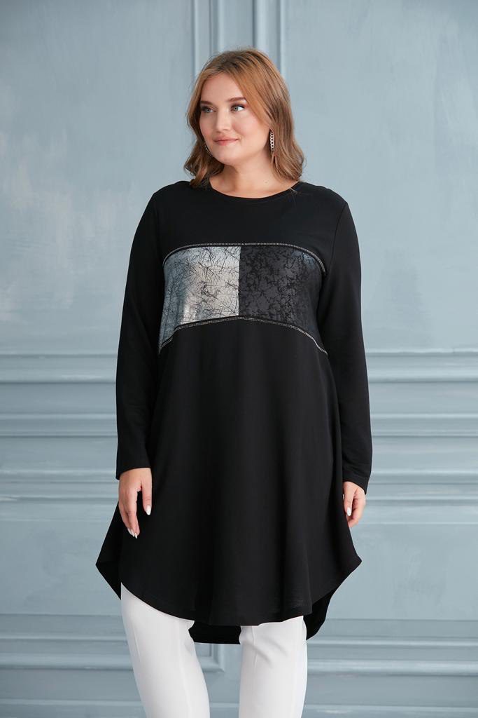 Tunique noire longue évasée motif argent